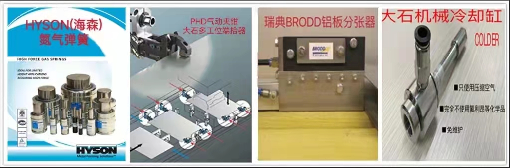本公司是HYSON氮?dú)鈴椈稍谥袊目偞恚⑻峁┕苈吩O(shè)計(jì)及售后服務(wù)。同時(shí)還代理美國PHD氣動(dòng)夾鉗、SWEDEN機(jī)器人平衡缸、美國LSP噴涂系統(tǒng)、法國PRONIC模內(nèi)攻絲機(jī)等。另外,本公司還提供多工位模具自動(dòng)化端拾器產(chǎn)品,從設(shè)計(jì)、制造、運(yùn)輸、安裝、調(diào)試為客戶提供整套“交鑰匙”工程。
